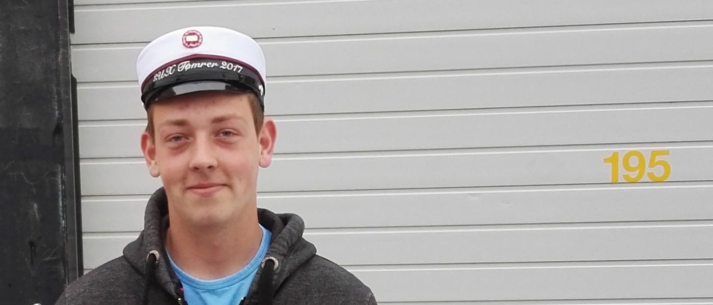 Han fortæller, at uddannelsen er som skabt til ham: ”Med EUX kan jeg jo det hele. Jeg kan både fortsætte som tømrer eller læse videre til konstruktør. Jeg ønsker begge muligheder, så det er perfekt for mig”, siger den glade student.